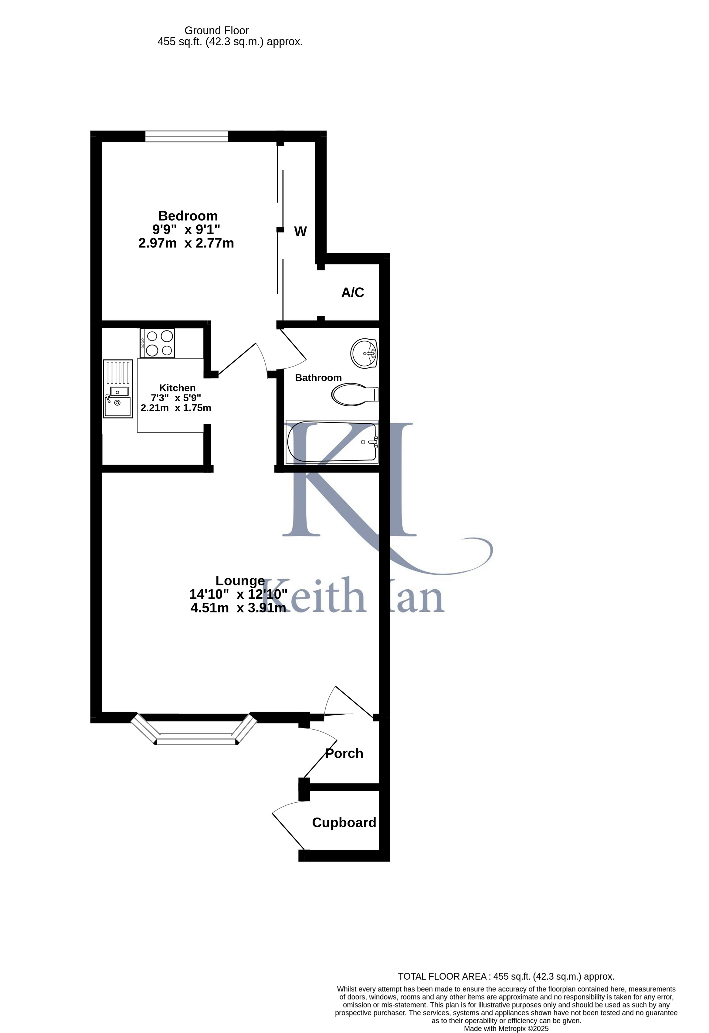 Bedroom 9' 1" x 9' 9" (2.77m x 2.97m)