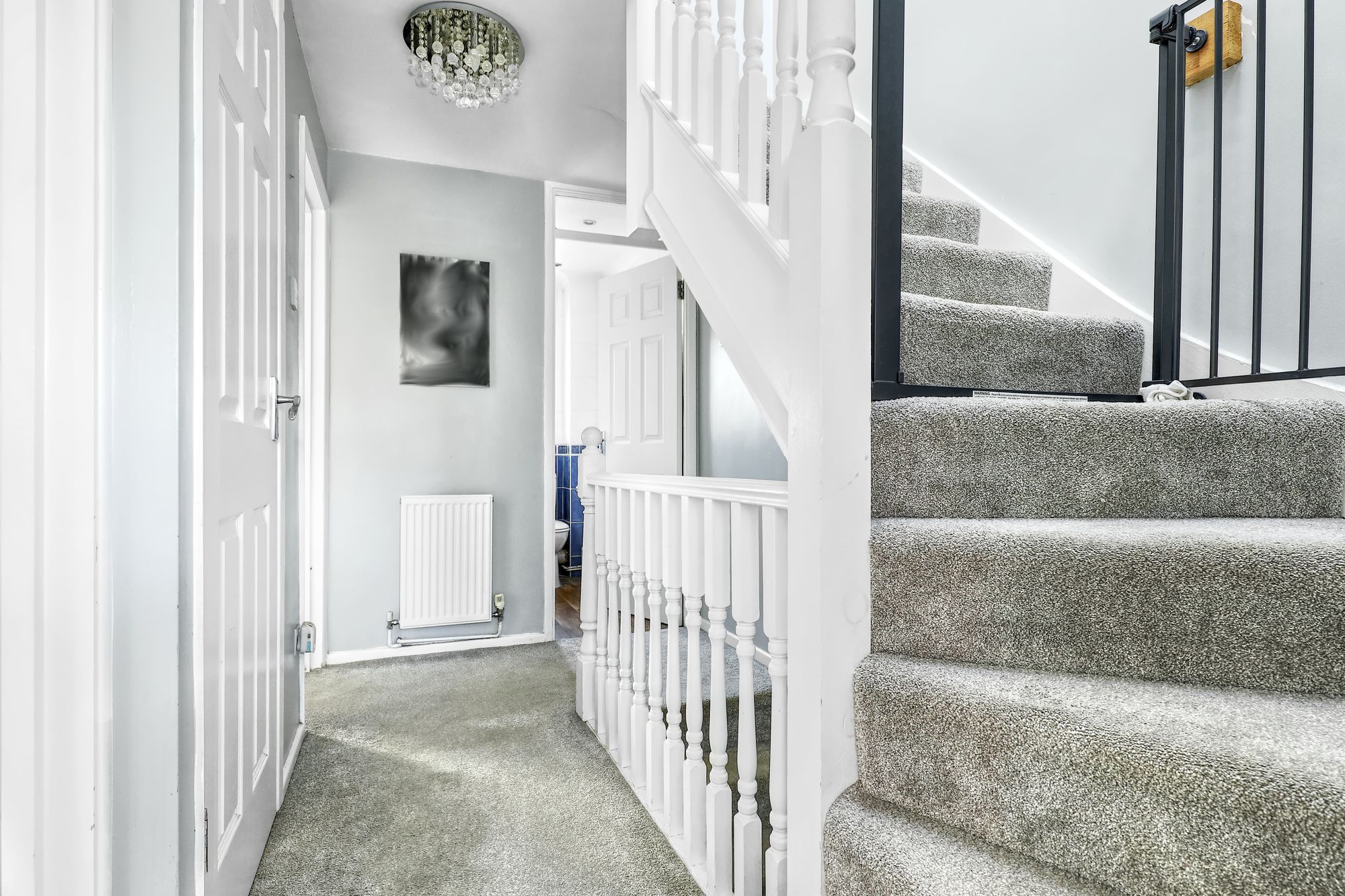The property boasts four well-appointed bedrooms, each filled with natural light. The master bedroom features plush carpets and light and open atmosphere, along with additional bedrooms also offering built-in storage. Both bathrooms benefit from contemporary fixtures, decorative tiling, bath-tubs, and stylish sinks, creating inviting spaces for daily routines.