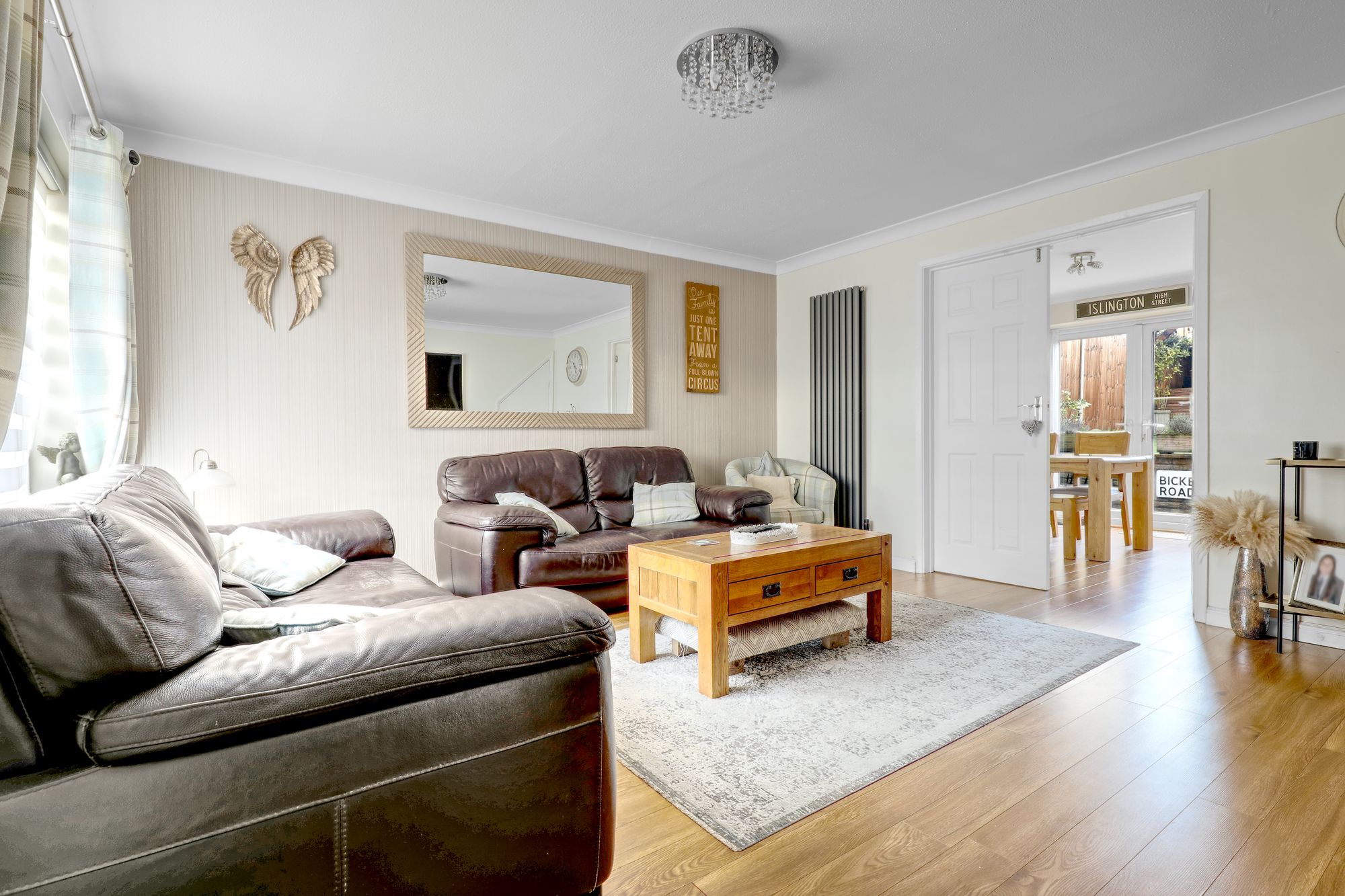 Keith Ian are pleased to offer this impressive four-bedroom, two-bathroom semi-detached house, thoughtfully designed for comfortable family living and entertaining. The home features a bright and spacious open plan kitchen and dining area, enhanced by wood effect flooring, modern decor, and seamless flow between spaces. The stylish kitchen is equipped with sleek modern units, integrated oven, and wooden countertops, complemented by a classic butler sink and a large window that frames delightful garden views. The dedicated utility room provides ample storage and ample space for a washing machine and dryer.