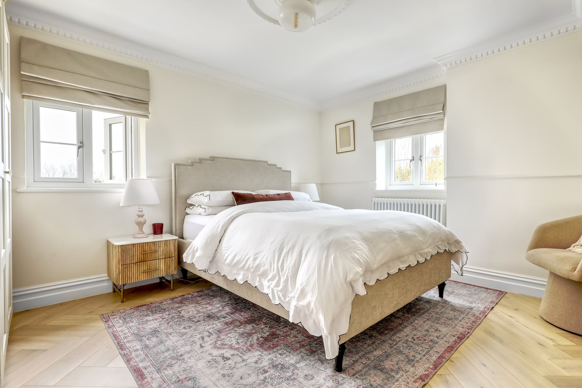 A generous double bedroom finished in neutral tones, benefiting from duel aspect windows and space for additional furniture.